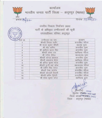 भाजपा ने अनूपपुर और पसान नगर पालिका की सूची की जारी publicpravakta.com भाजपा ने अनूपपुर और पसान नगर पालिका की सूची की जारी पब्लिक प्रवक्ता (जनता की आवाज़) जून 19, 2022 Share to: Twitter Facebook URL Print Email Labels: ANUPPUR NEWS BREAKING NEWS FEATURED NEWS